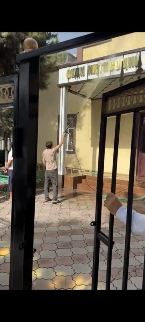 Бо мақсади таъмини бехатарии бинои суд, гирду атрофи он бо панҷараҳои оҳанини муосир иҳота карда шуда, бино ва утоқҳои суд аз гарду ғубор тоза карда шуданд.